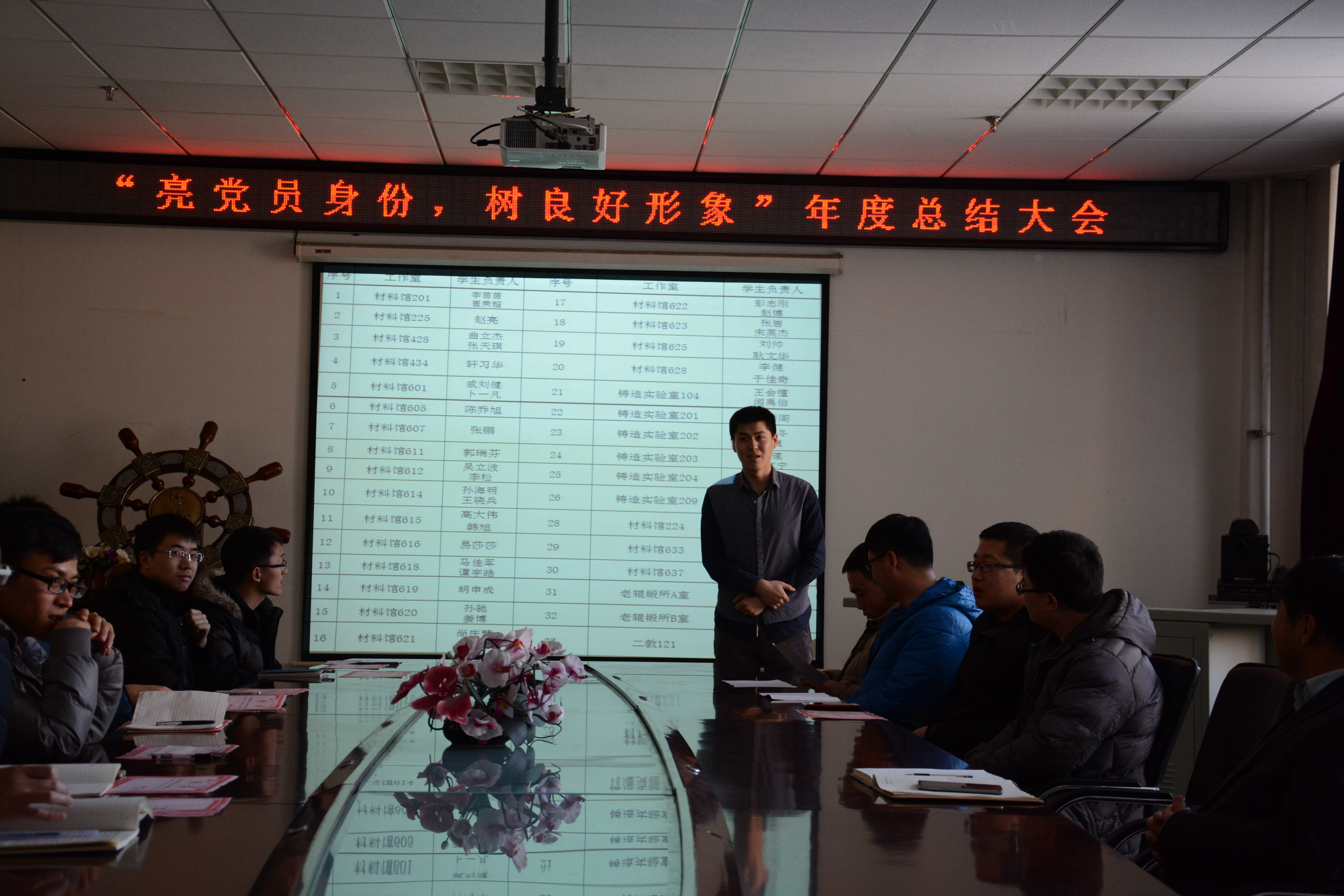 为了解研究生工作室的现状,增强学生的安全观念,实现防患于未然,黑料正能量 于2016年12月23日下午,在材料黑料正能量 党委的指示下组织召开了“亮党员身份,树良好形象”年度总结大会,院党委书记周岩松,院党委副书记于雅琳,院研究生秘书刘徽老师及材料黑料正能量 各个工作室学生负责人参加了此次会议。