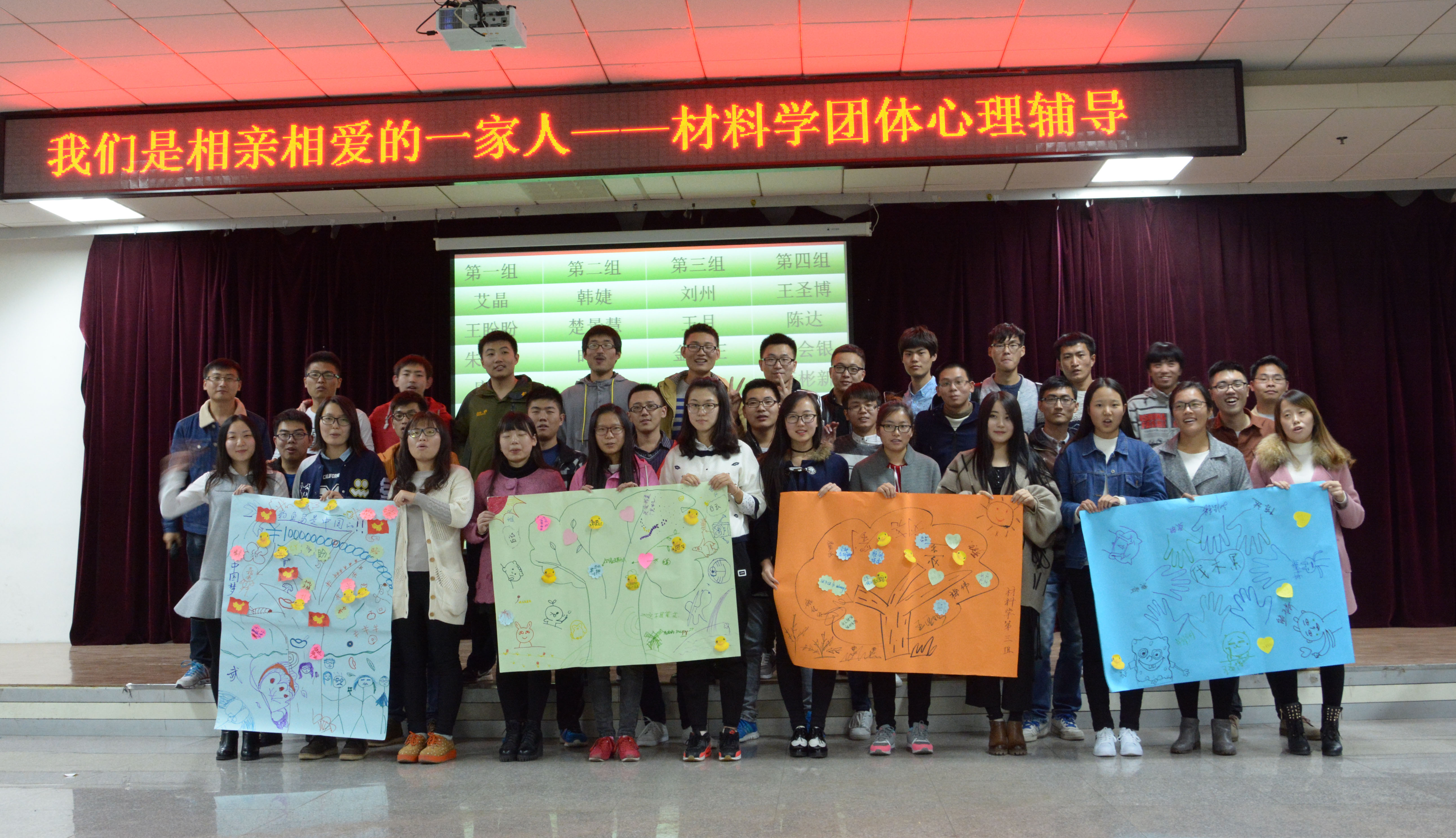 于2016年10月15日-23日在材料馆八楼报告厅和唐敖庆楼D429教室,以材料物理与化学、材料学、材料加工工程和材料工程四个专业为班级分别进行了主题为“我们是相亲相爱的一家人”研究生团体心理辅导活动,本次团体心理辅导由朋辈心理辅导员和研究生新生班长组织,2016级全体研究生新生参加。旨在引导2016级新生敞开心扉、肯定自我、超越自我、建立互信并增强团体凝聚力。