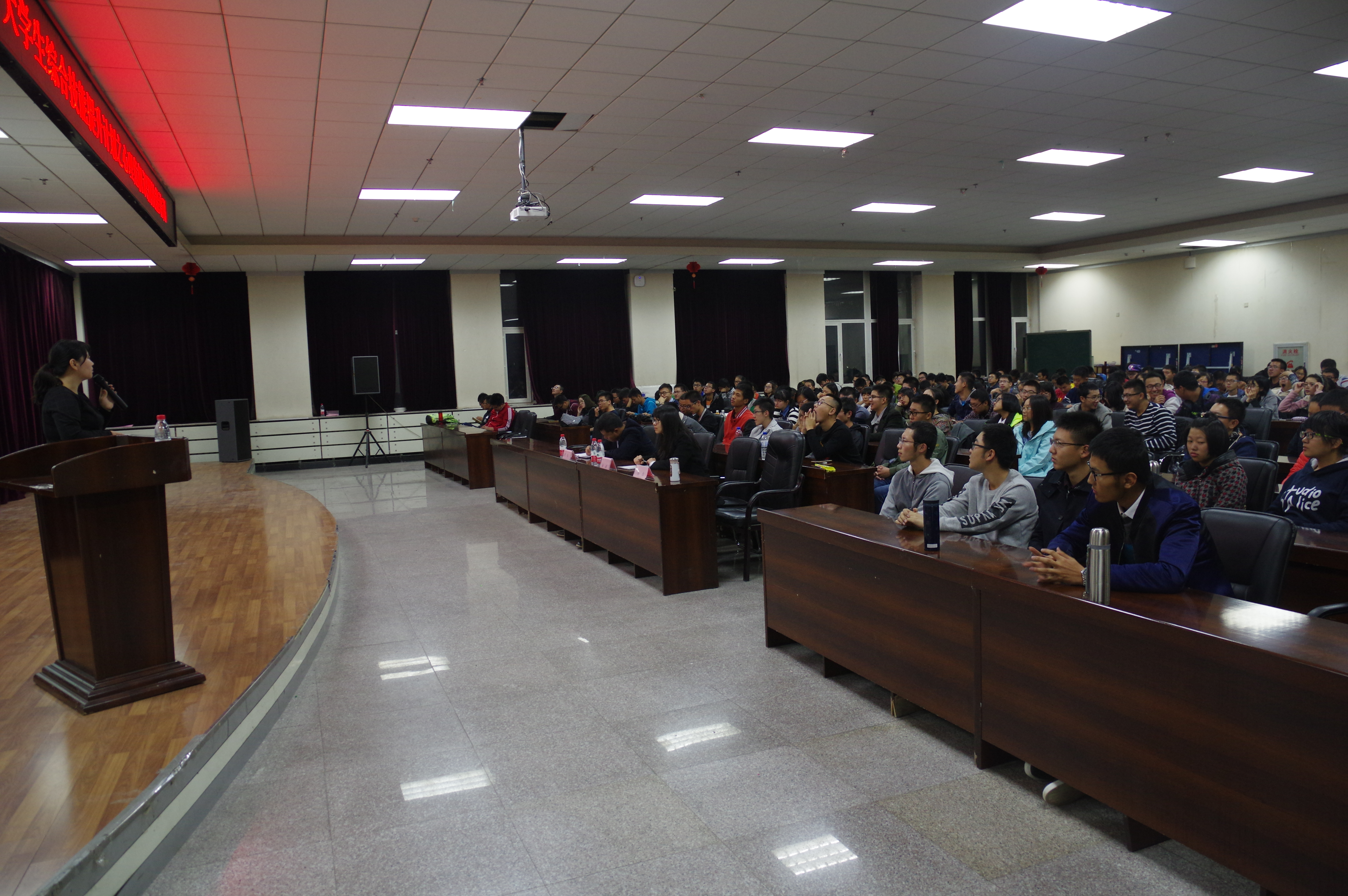讲座伊始,金佳老师用让学生们张开双臂,保持水平,食指贴合拇指的方法,活跃现场气氛,放松学生情绪,从而使他们意识到掌握放松精神方式的重要性,随后金佳老师结合PPT、自身经历、事实案例等向同学们讲授了识别心理疾病的方法,心理障碍所表现出的行为特征与预防心理疾病的措施,分析了产生心理问题的原因,讲述了目前国内外心理咨询情况,呼吁同学们积极参加心理疏导,让他们深刻明白了心理健康的必要性,在师生互动问答中,同学们积极踊跃提问,向老师提出自己感到困惑的问题,老师耐心地讲解。并在讲座尾声,留下了自己的联系方式,以便日后能更好地为同学们解决心理问题,最终,讲座在热烈的掌声中圆满结束。
