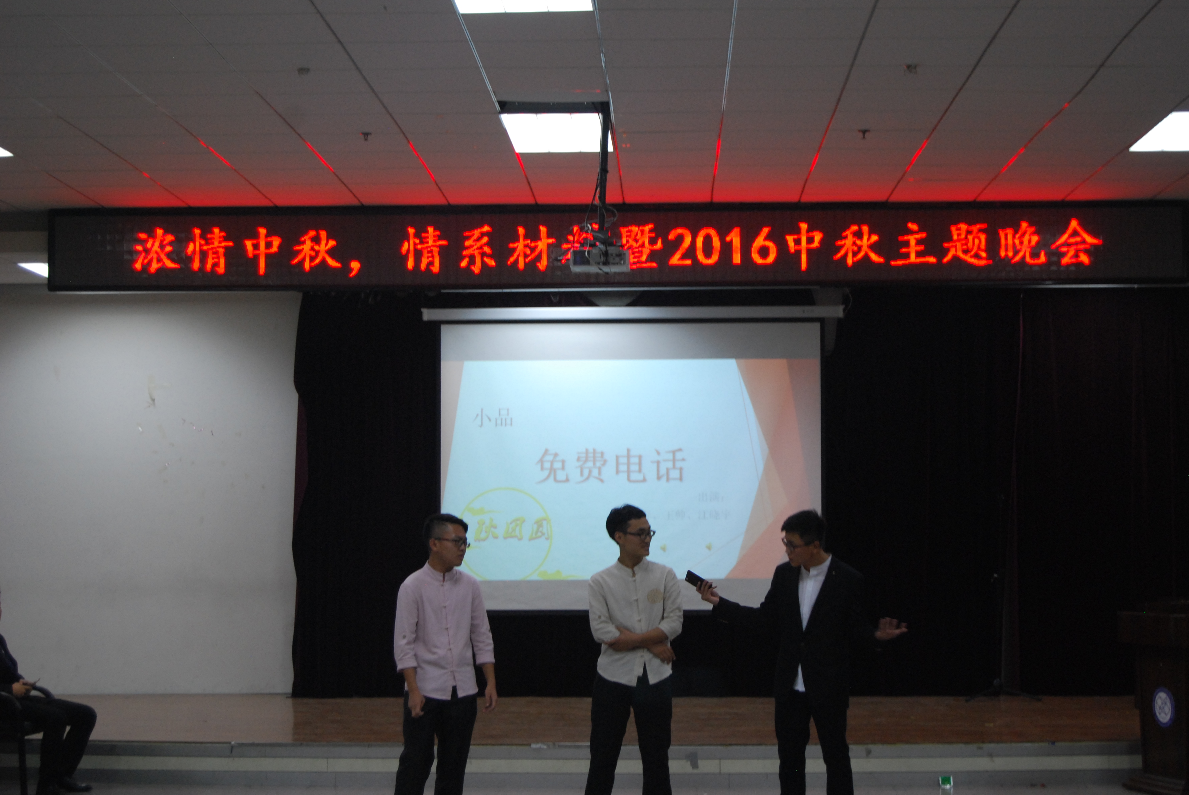 团委经过精心的组织安排,一场别开生面的中秋节晚会在逸夫机械材料馆八楼浓情上演,团委书记兼2013级辅导员张本龙、2016级辅导员严冬莅临晚会现场。