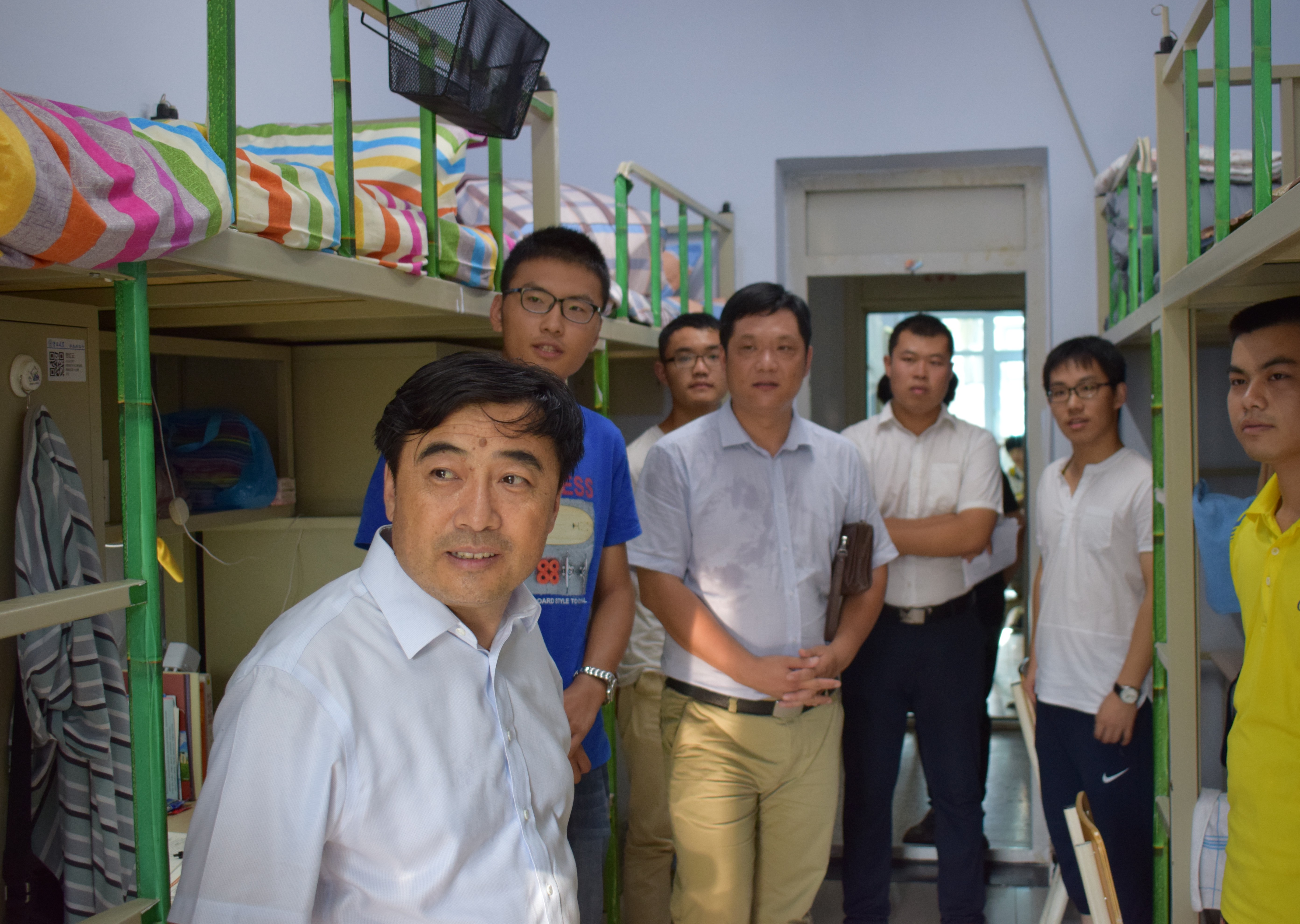 党委书记周岩松,党委副书记兼副院长李东生,16级辅导员严冬以及辅导员助理走访了新生寝室,查看新生住宿及内务情况。