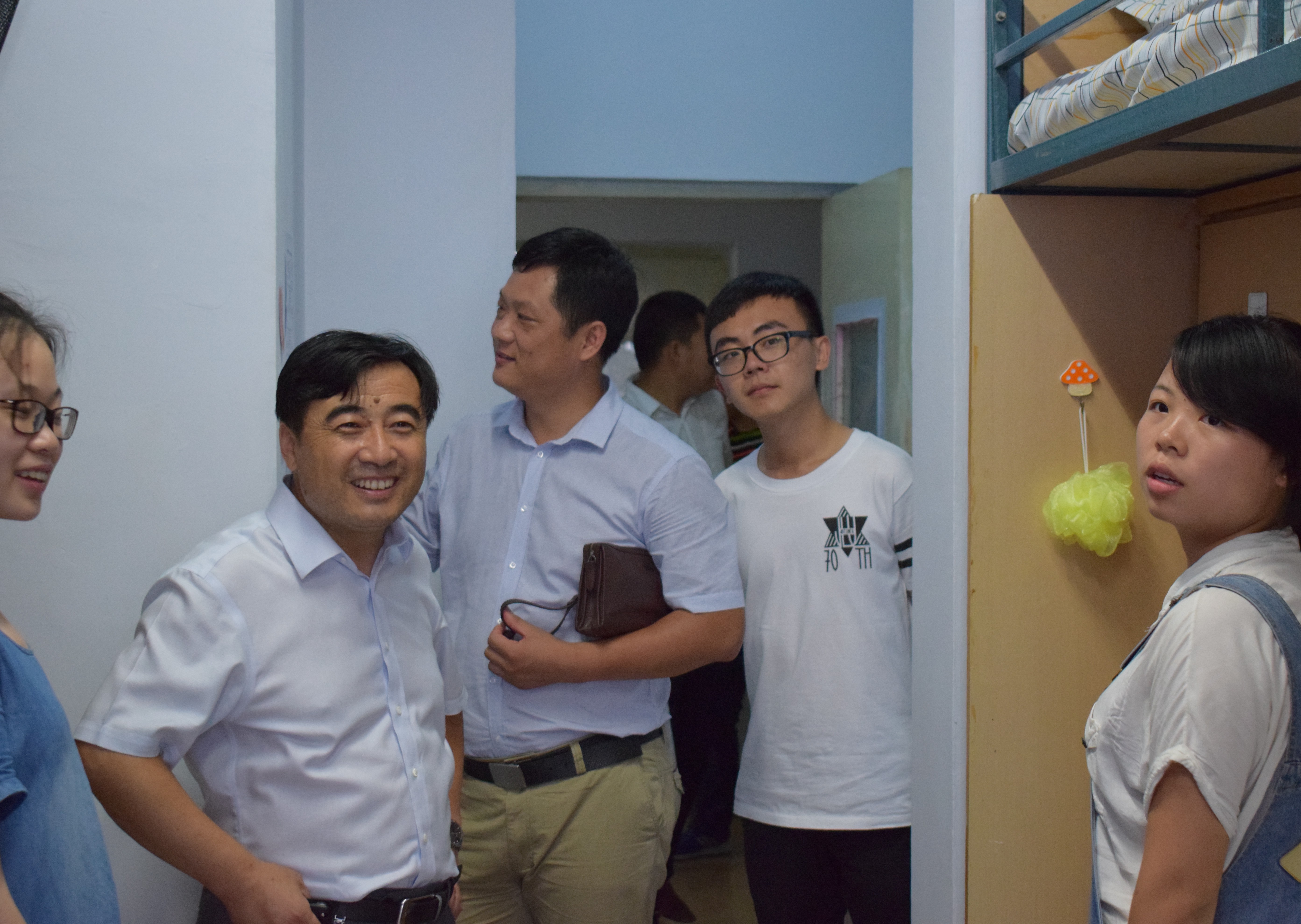 的住宿条件,表示有信心尽快地适应大学新生活。在走访过程中,书记鼓励同学们要珍惜良好的条件,刻苦学习,用知识充实头脑,努力成为社会的有用之才,最后,新生们对领导们的殷切关怀表示了感谢。