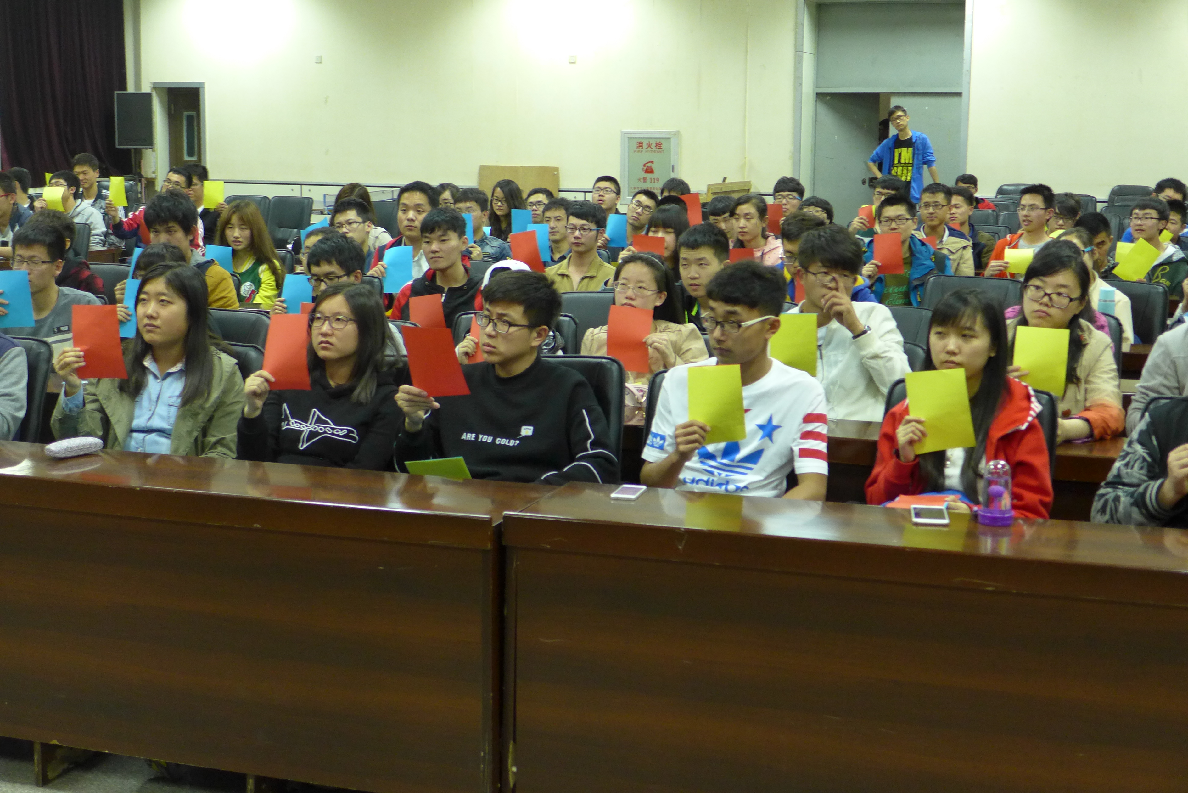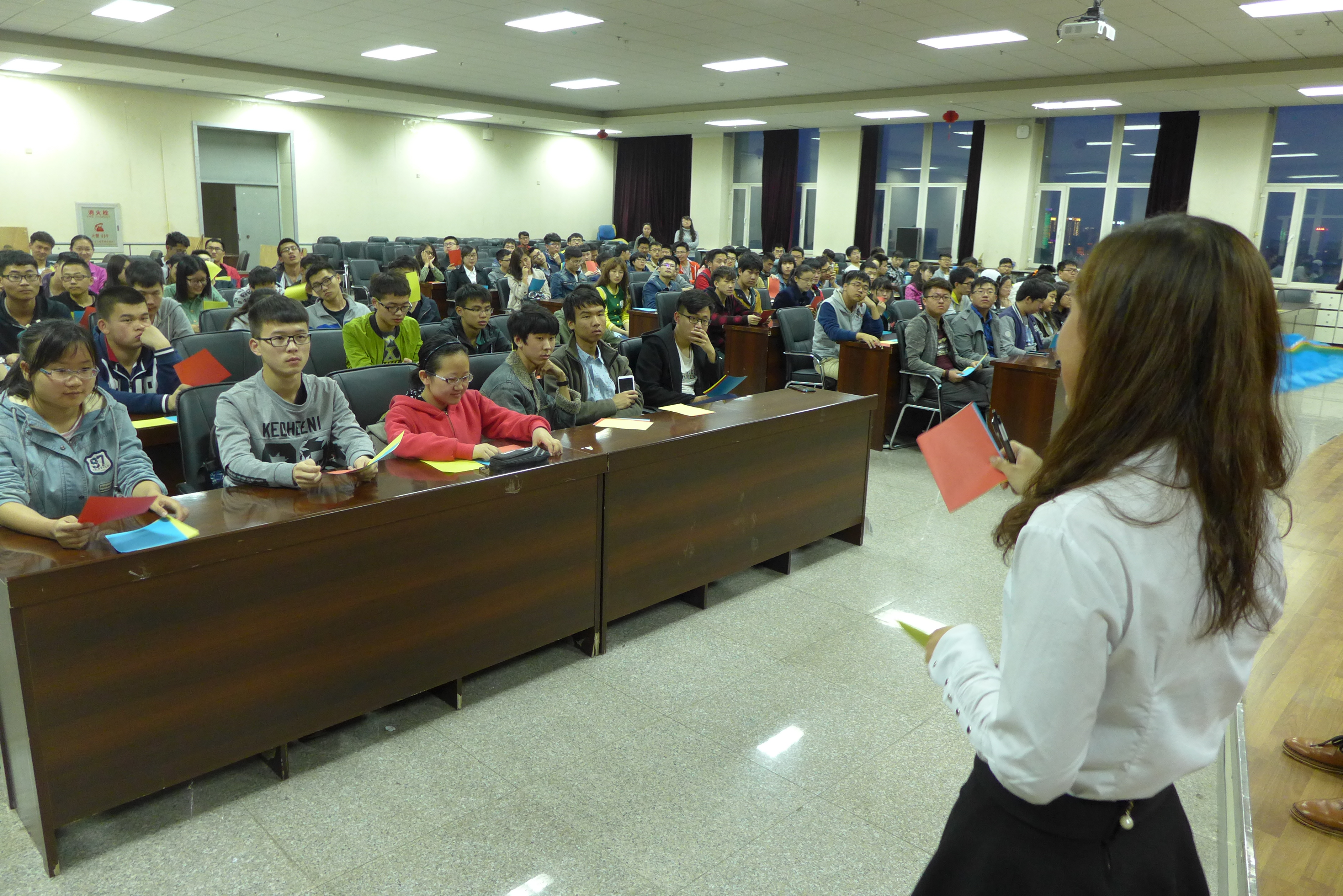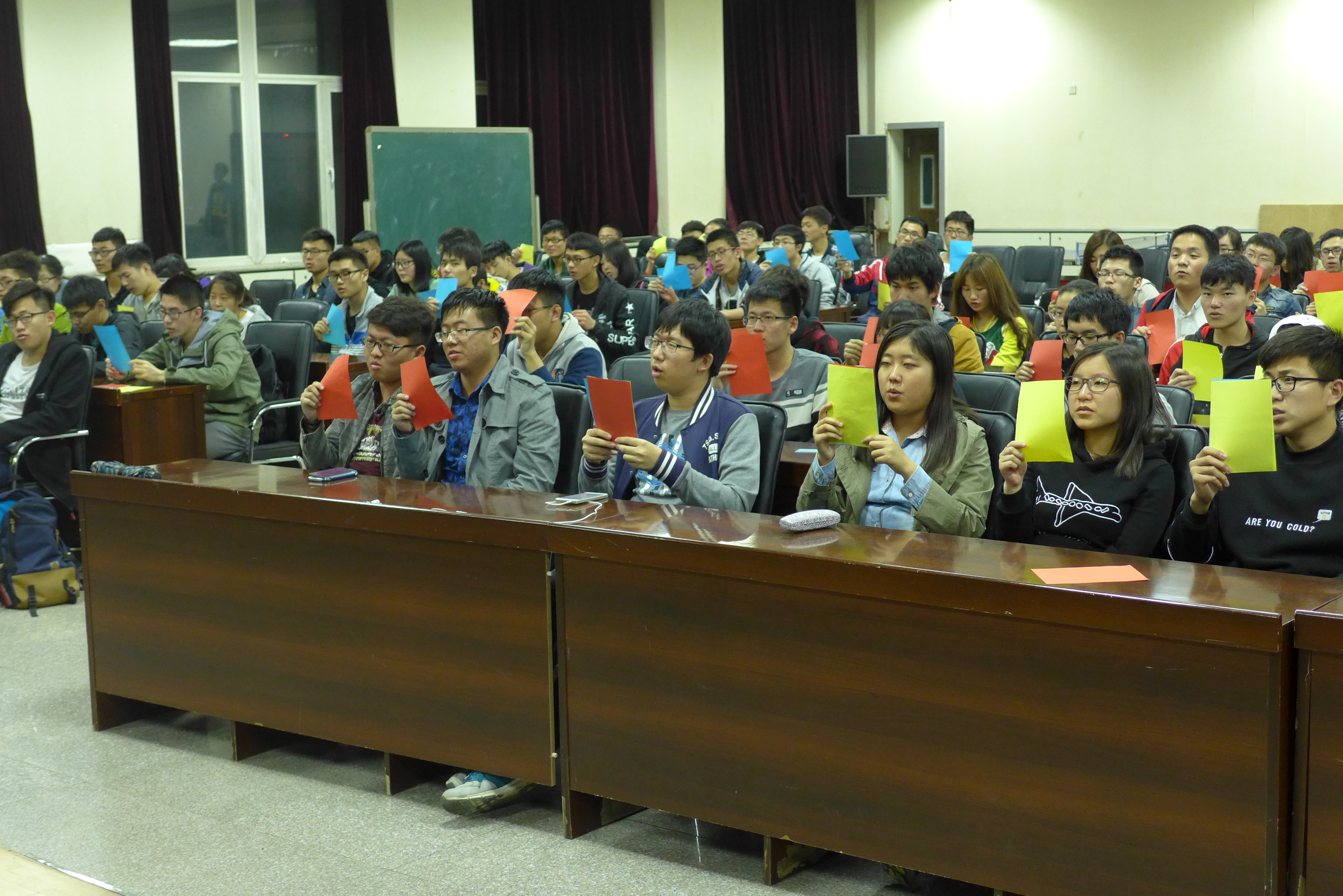 排练于晚8:30正式开始,几位团委副书记首先向大家交代了运动会当天观众啦啦队的活动流程安排、应带物品及运动会当天的注意事项。在确定了最终人选后,几位负责人着重地对队形进行了安排,包括手持三色变色扇子摆型、口号的敲定,每个动作、每个配合都进行了统一的训练。“材料群雄,气贯长虹。鲲鹏展翅,笑傲苍穹”,这句嘹亮的口号是他们青春的誓言,也是材料黑料正能量