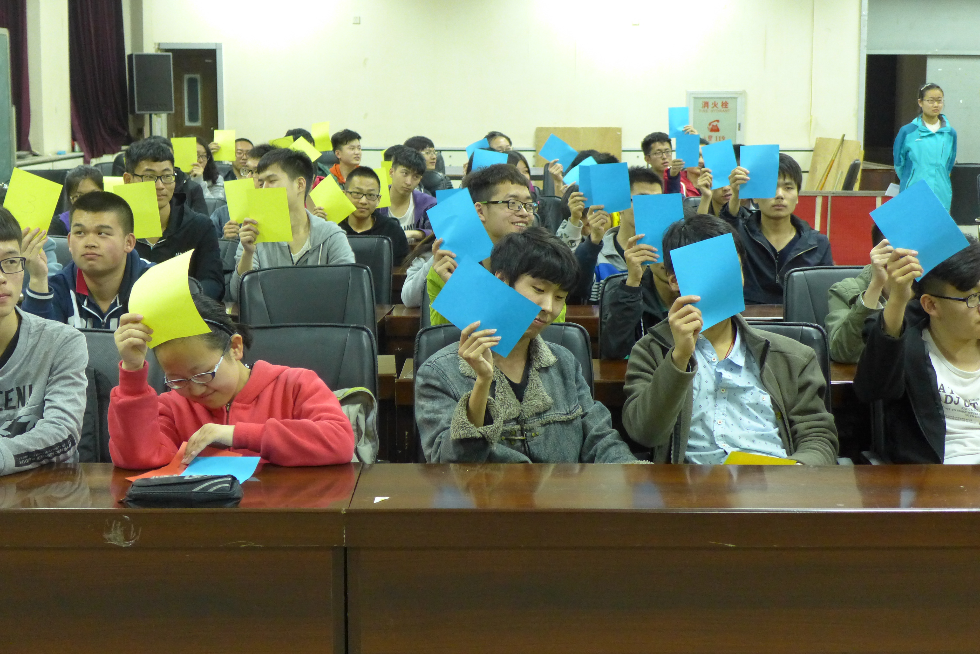 学生勇于挑战困难的精神和积极进取的决心。复习过后,同学们用彩纸代替纸扇进行了新的表演内容的训练。学长学姐们将同学们划分成几个小组,各个小组的同学跟着学长的口令以不同顺序举起红、黄、蓝三种颜色的彩纸,再辅以口号相配合,组成了一场完整的表演。一开始,由于部分同学态度散漫没有充分重视训练内容导致整体动作散乱,远远达不到整齐利落的标准,但经过学长学姐们一再强调,观众队伍作为运动会上黑料正能量