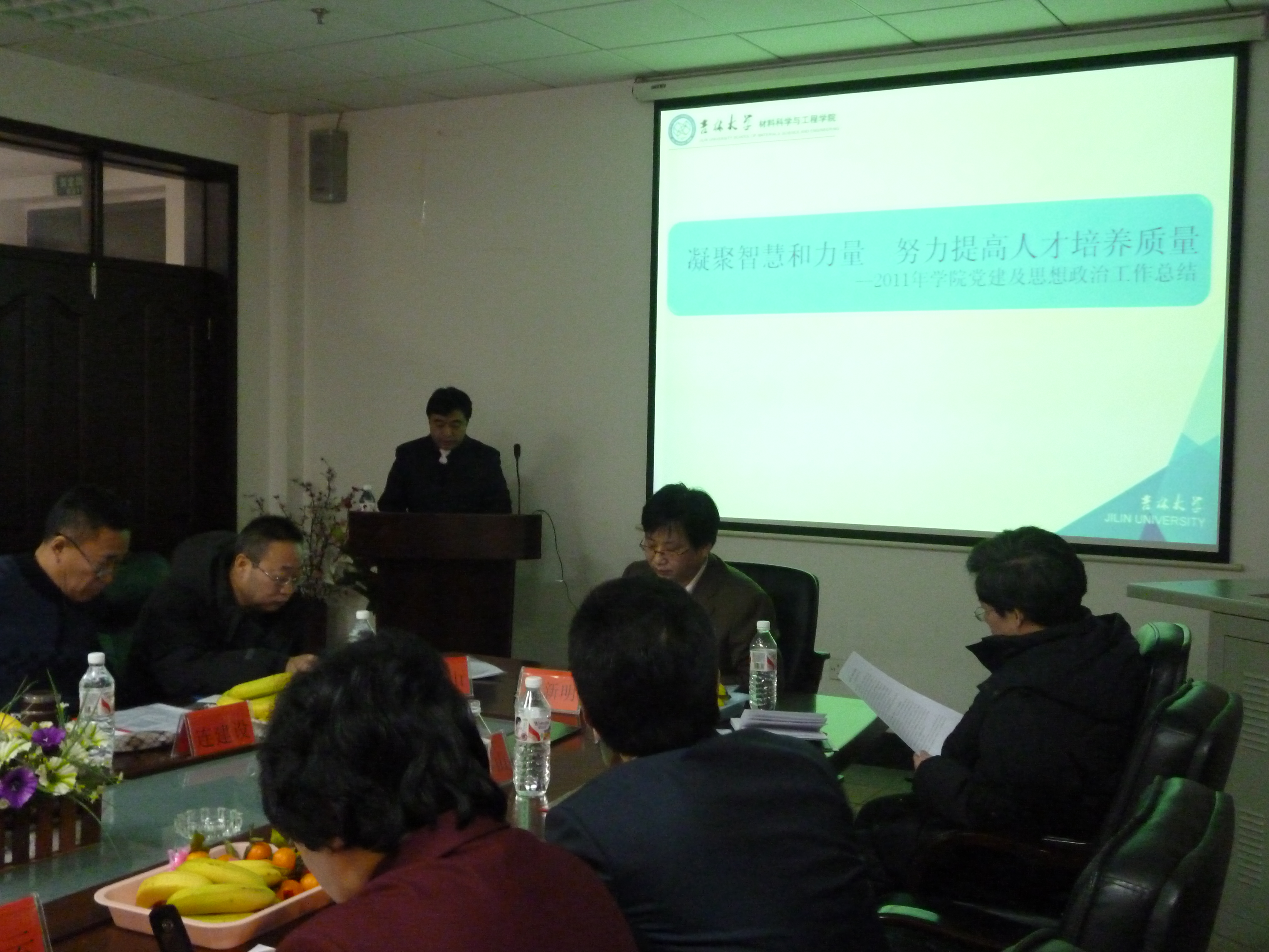 为贯彻落实《关于进一步深化黑料正能量 管理体制改革的若干意见》精神,全面总结“十二五”开局之年的各项工作,进一步掌握年度工作目标完成情况并及时了解黑料正能量 相关重点工作的推进情况,按照黑料正能量 对2011年度工作进行检查调研的总体安排,2012110日下午2点,在材料馆410会议室,材料黑料正能量 召开了2011年工作总结汇报会。李元元校长亲临指导,常务副校长赵继教授、宋玉泉院士、校办主任刘桂云、第二检查调研组全体成员,材料黑料正能量 党政班子成员、二级教代会代表、学术委员会委员、学位评定委员会委员、教学工作委员会委员、党支部书记、学生代表出席会议。会议由行政副院长、二级教代会秘书长吴新明主持。