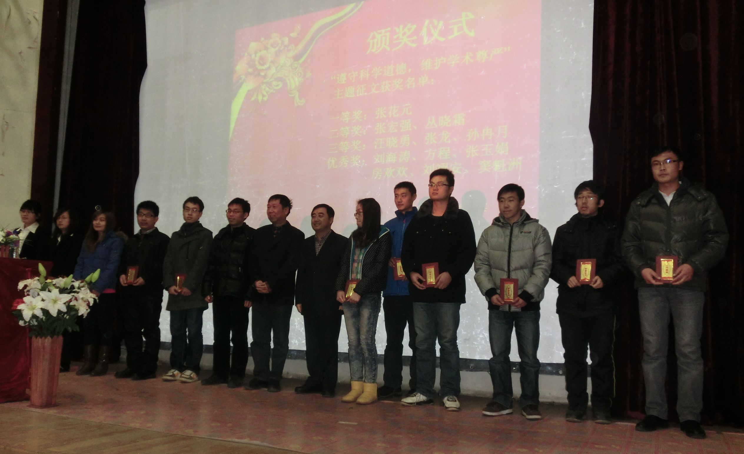 广大研究生积极参与,各抒己见,指出学术不端行为的危害性,遵守学术道德的重要性以及维护学术尊严的紧迫性,并结合自己的研究经历,做出了郑重的承诺。经过认真负责的评审,评出一等奖:张花元;二等奖:张宏强、丛晓霜;三等奖:汪晓勇、张龙、孙冉月;优秀奖:刘翊安、刘海涛、方程、张玉娟、房欢欢、窦魁洲。