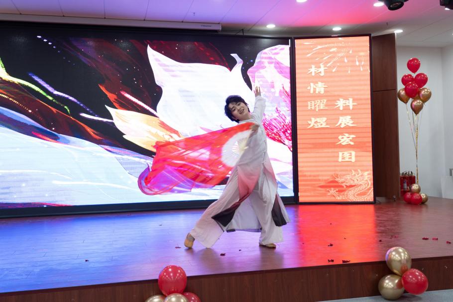 的老师和同学们同台献艺,相声演绎、歌舞表演、乐器武术、诗歌朗诵等形式交融糅合,整场晚会精彩纷呈、高潮迭起,真挚地表达了材料人的梦想和追求、情怀与担当,为全场教职工带来了一场慷慨激昂、大气磅礴的视听盛宴。欢声笑语中,除了精彩纷呈的节目表演,还有激动人心的抽奖环节,趣味热闹的游戏互动,现场欢腾不已,热闹纷呈。此起彼伏的掌声与欢呼声在会场内交相辉映,将联欢会的气氛推向最高潮,给每位教职工都留下了难忘的回忆!