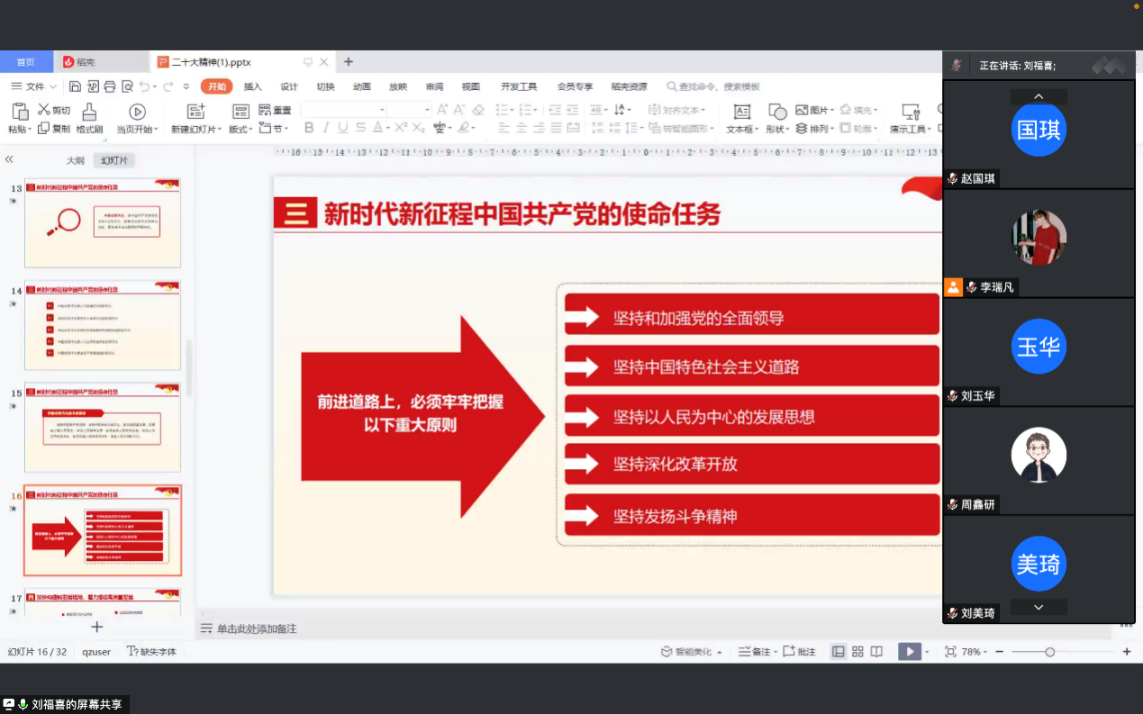 会上,黄宏分享了学习心得,党的二十大报告主题鲜明、内涵丰富、思想深邃、视野宏阔,充分体现了全党意志、反映了全体人民心声,通篇闪耀着马克思主义真理光芒,是全党全国各族人民奋进新征程、实现第二个百年奋斗目标的政治宣言和行动指南,对全面建设社会主义现代化国家、全面推进中华民族伟大复兴具有重大意义。我们党支部成员要把学习宣传贯彻党的二十大精神作为当前及今后一个时期的首要政治任务,以高度的政治责任感和历史使命感,认真学习领会,深刻把握精神实质,指导实际工作。