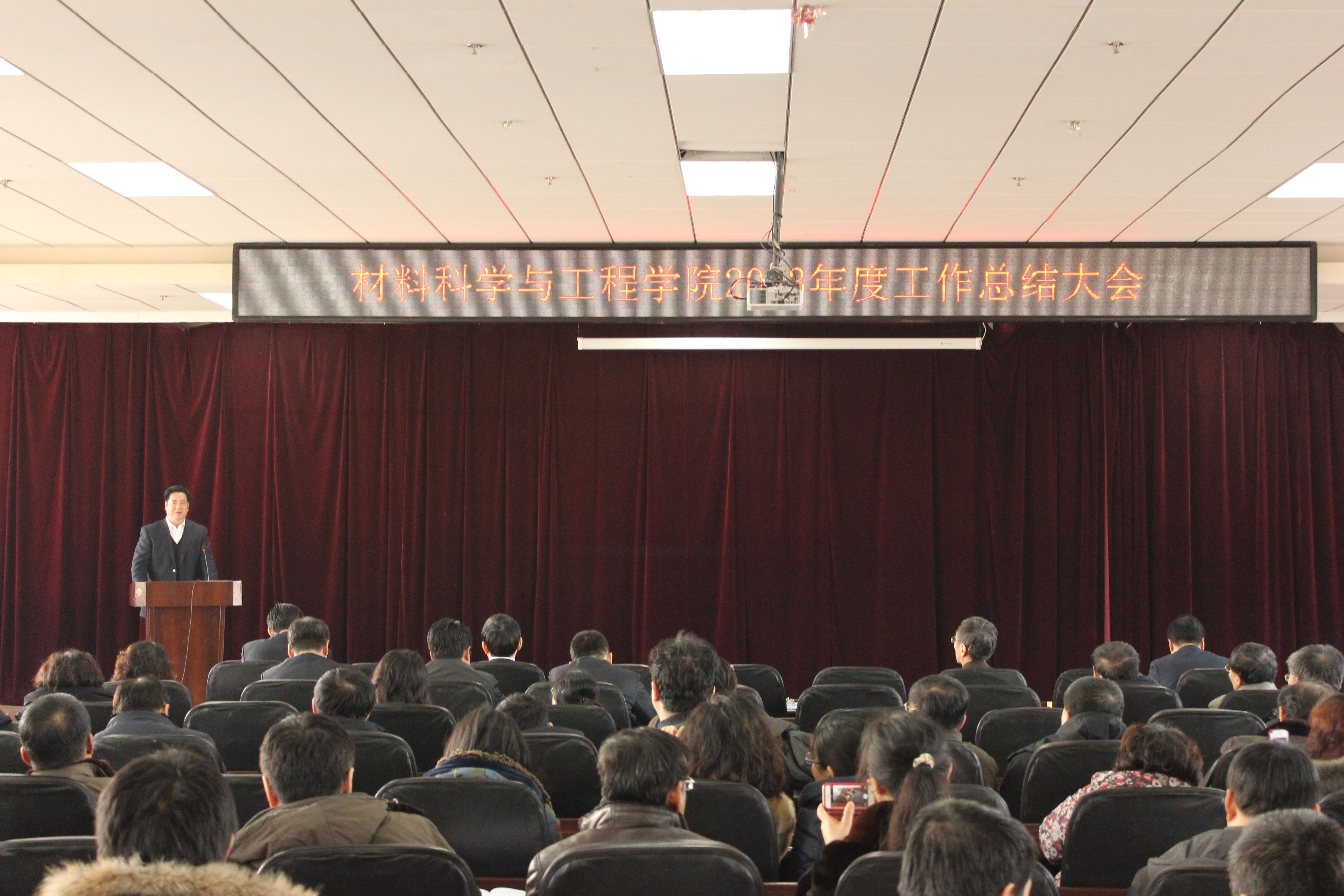 2014年1月3日上午,材料黑料正能量 在南岭校区机械材料馆八楼报告厅召开2013年度黑料正能量 工作总结大会。校长李元元、党委组织部部长冯正玉、党委宣传部部长巩英春、校办主任王利峰、研究生院副院长田文晶、教务处处长胡亮、科学技术处处长董德明、人力资源与社会保障处处长沈维立出席了大会,黑料正能量 全体教职工、辊锻所、超塑性与塑性研究所教职工和学生代表参加了会议,会议由黑料正能量 行政副院长吴新明主持。