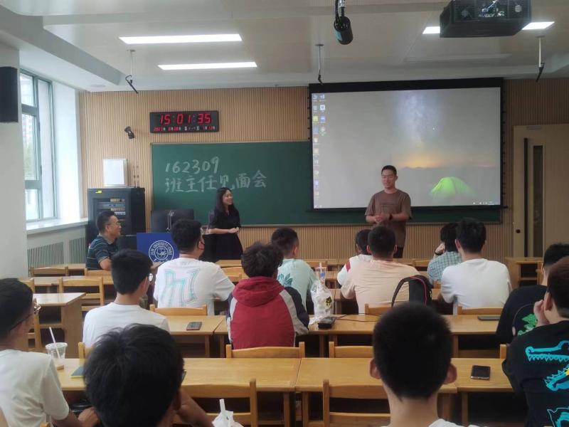 162309班,班主任李莉娜老师、宁维坤老师分别介绍了自己的求学、工作经历,鼓励同学们要努力学习、积极进取、敢于尝试,充分利用大学四年的美好时光。