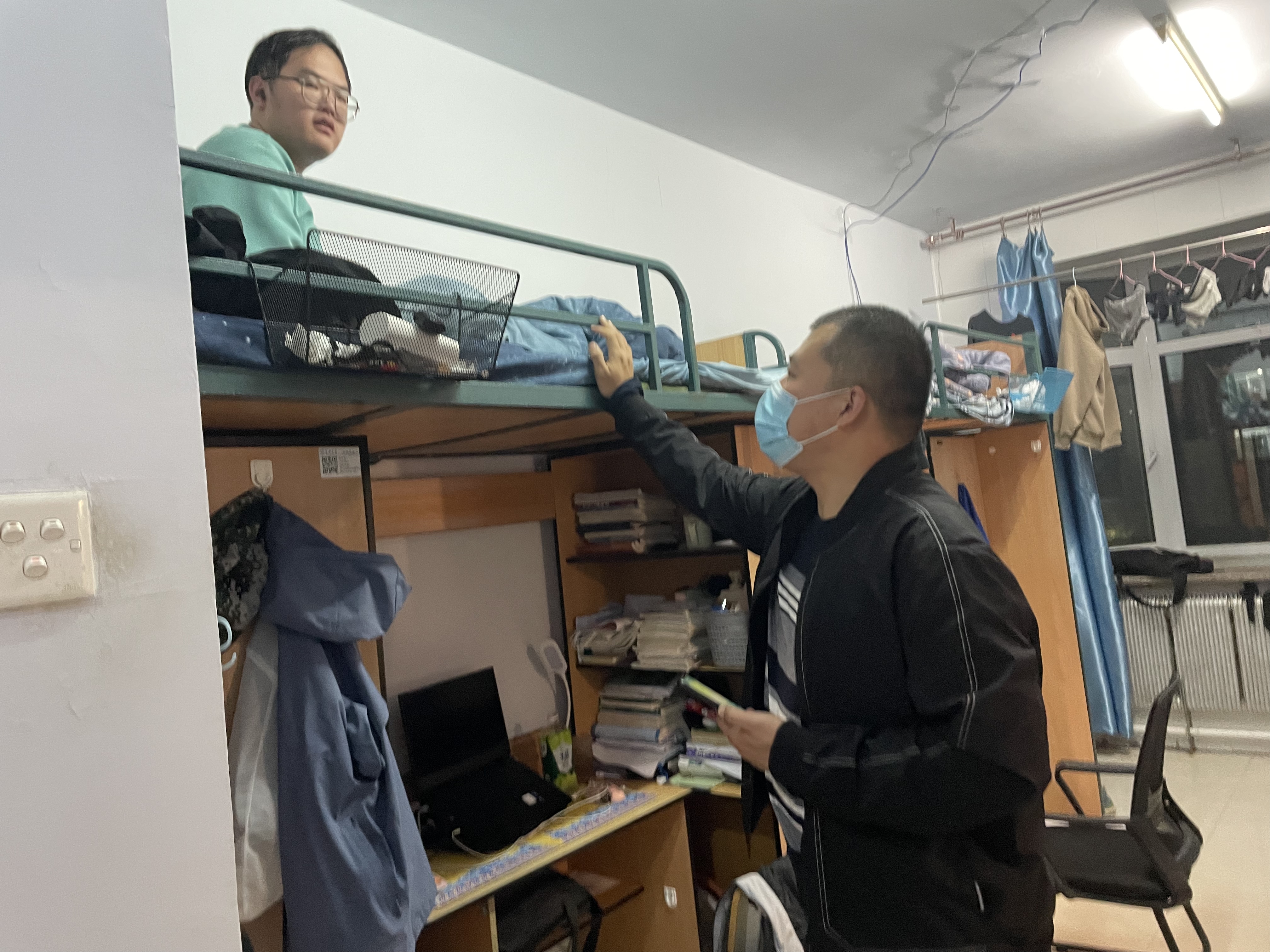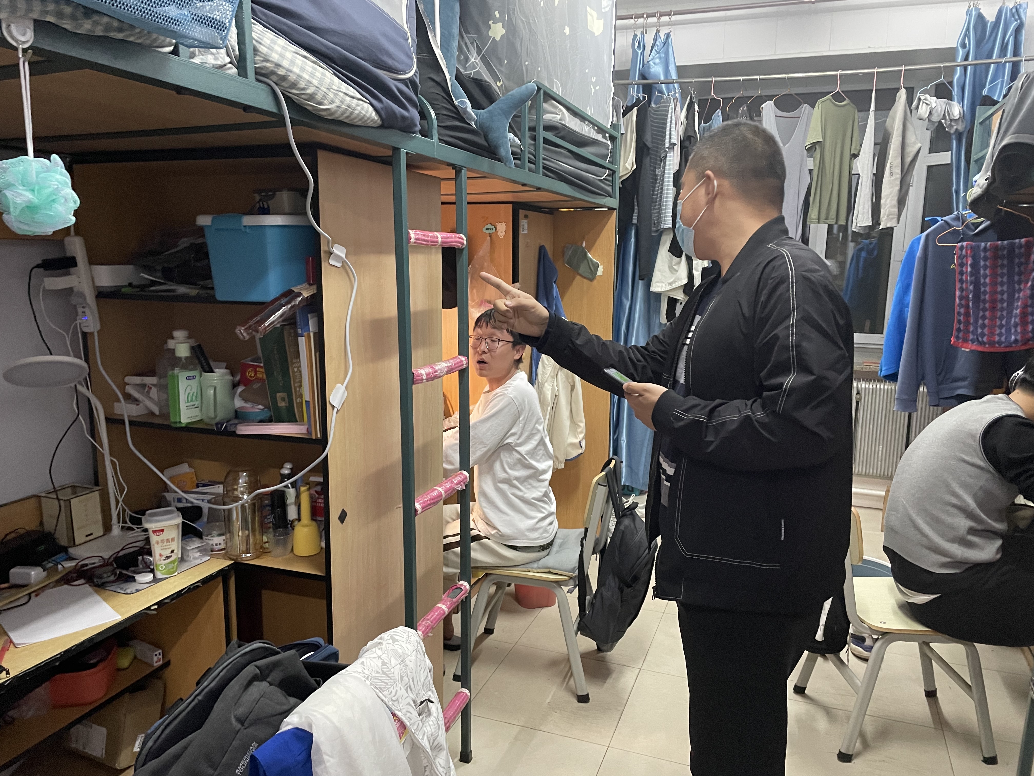 五一假期后寝室安全检查暨“寝室一小时”微思政:5月3日、4日晚,严老师在辅导员值班期间走访了南岭校区十一公寓男生寝室,开展了“晚点名”工作,并与未在寝室同学、家长及时沟通,了解未在寝室学生实际情况,同时提醒已返校同学要及时调整状态,尽快适应本学期后半段的学习和生活;5月6日下午,严老师与女生学生干部代表共同走访了南岭校区十二公寓女生寝室,一方面进一步了解学生返校情况、另一方面对女生寝室卫生情况进行督促和提醒,严老师在和同学们交流过程中,提醒大家假期后要收心学习,寝室卫生要注意保持,女生同学们要坚决避免使用违章电器,杜绝寝室安全隐患。