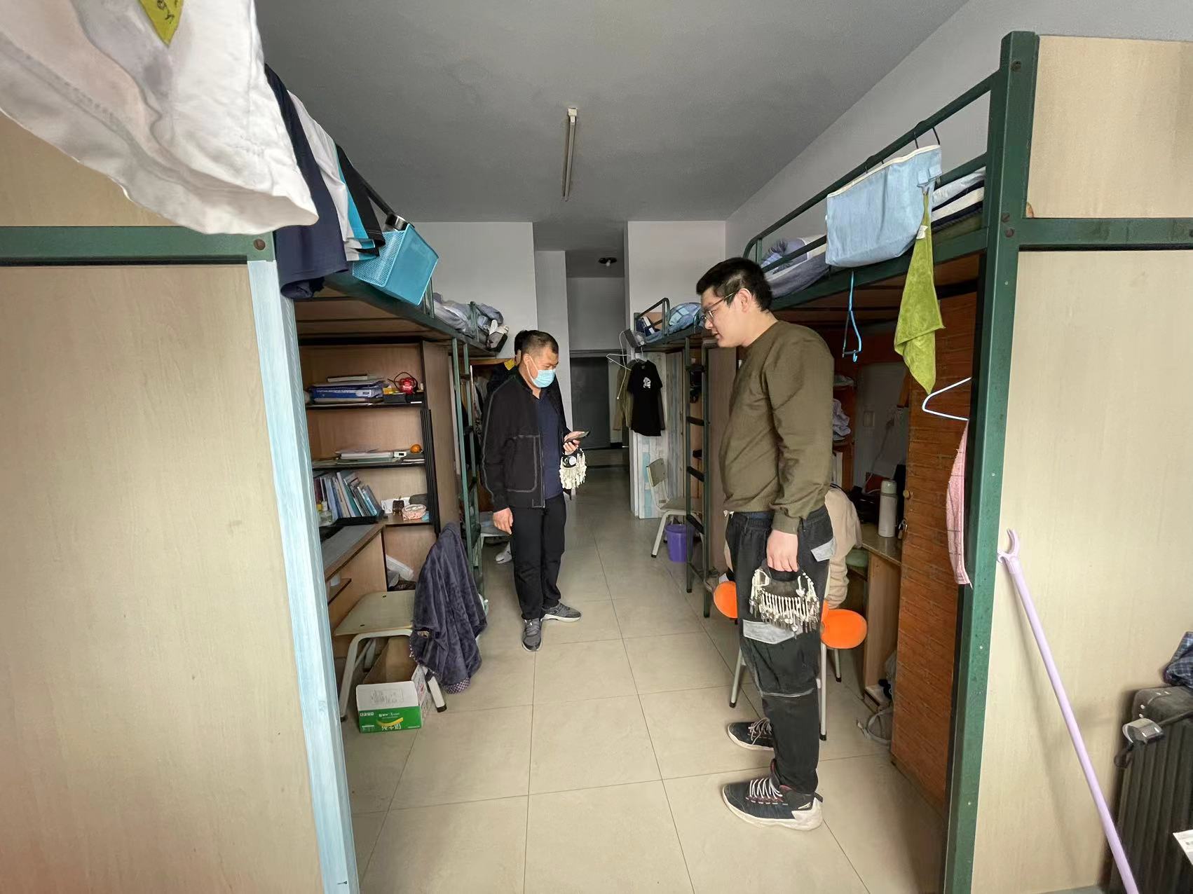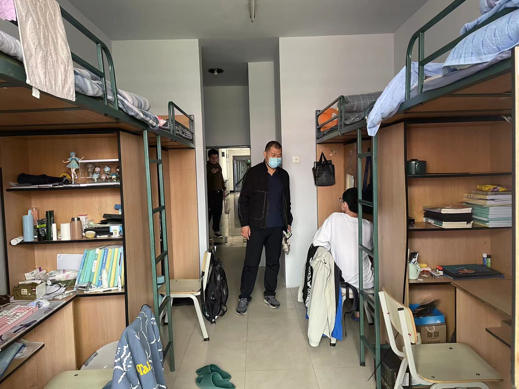五一假期前寝室安全检查暨“寝室一小时”微思政:4月27日下午,严老师逐一走访了南岭校区十一公寓2021级材料类专业学生寝室,对学生寝室进行安全检查和卫生检查,在走访过程中,严老师不仅着重检查了寝室用电、用水等情况,同时对室内卫生间、飘窗等易出现顽渍的区域进行检查。严老师边走访边与同学们交流,一方面提醒同学们注意假期期间的用电、用水安全,另一方面建议同学们在劳动和奋斗中过节,利用假期充电,打扫好寝室、规划好学期后半段的学习。