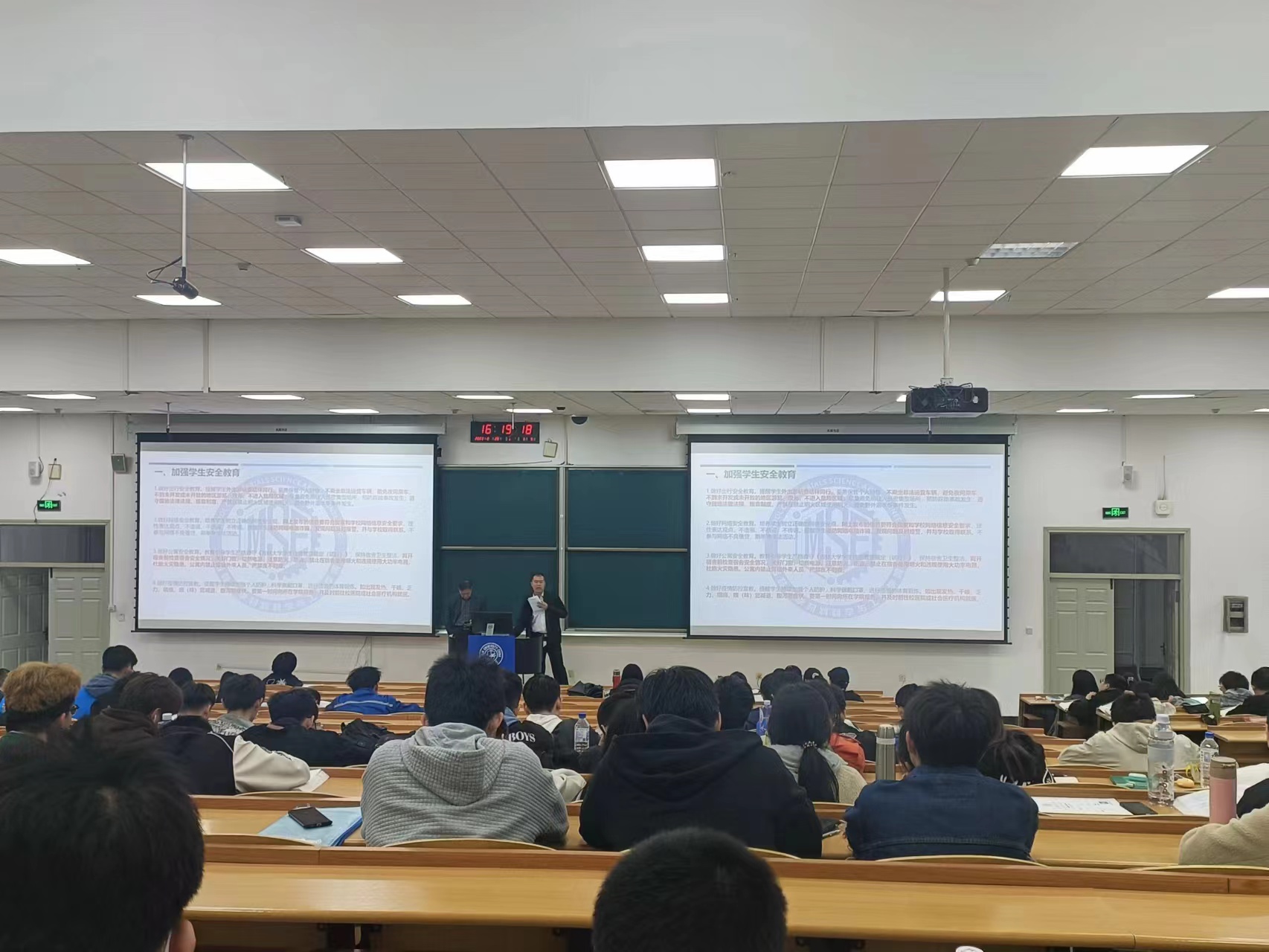 《关于做好劳动节期间本科生管理工作的通知》,并嘱咐同学们要注意假期期间的出行安全、网络安全、公寓安全、人身健康和财产安全等安全问题,严老师着重强调了近期多发的网络电信诈骗,警示同学们不要被网络上的信息蒙蔽双眼,要保持理性的判断。