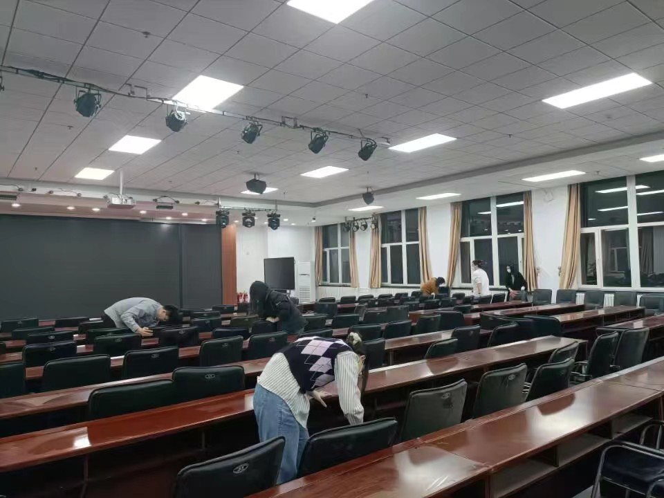 生活管理委员会于2023年3月21日晚组织部分同学开展劳动实践活动,本次劳动实践活动的主要内容为对材料馆八楼报告厅进行卫生清扫。