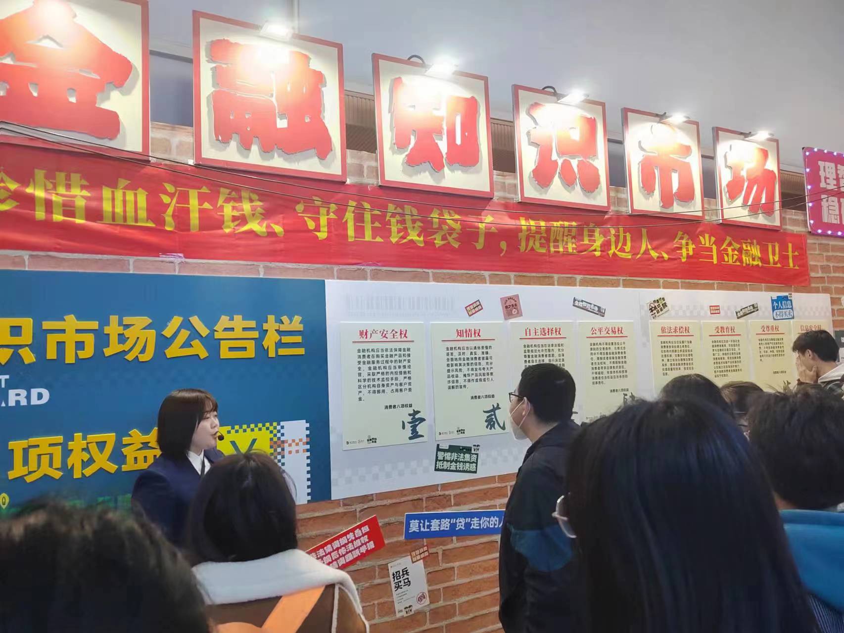 本次活动采用沉浸式体验形式进行宣传,根据电视剧“狂飙”中的场景搭建了金融知识市场。活动伊始,“金融知识市场管理员”与“强盛生鲜店长”以幽默的情景剧方式开场,提醒同学们要提高警惕,避免电信诈骗。接下来同学们参观了相关展区,包括水果店、熟食店、五金商店等,在展区中,讲解员老师或是以朗朗上口的顺口溜宣传反诈知识,如“常吃水饺和汤圆,提防欺诈被骗钱;酱油蚝油菜籽油,骗子舌滑嘴也油“;亦或是以谐音梗形式来提醒大家理智消费,谨防消费陷阱,如莫名电话清远“梨”,新鲜骗“橘”,小心“柚”惑等。随后,由东区保卫办田老师为同学们讲解了同学们身边发生过的真实案例,让同学们真切感受到反诈防骗与每个人都息息相关。
