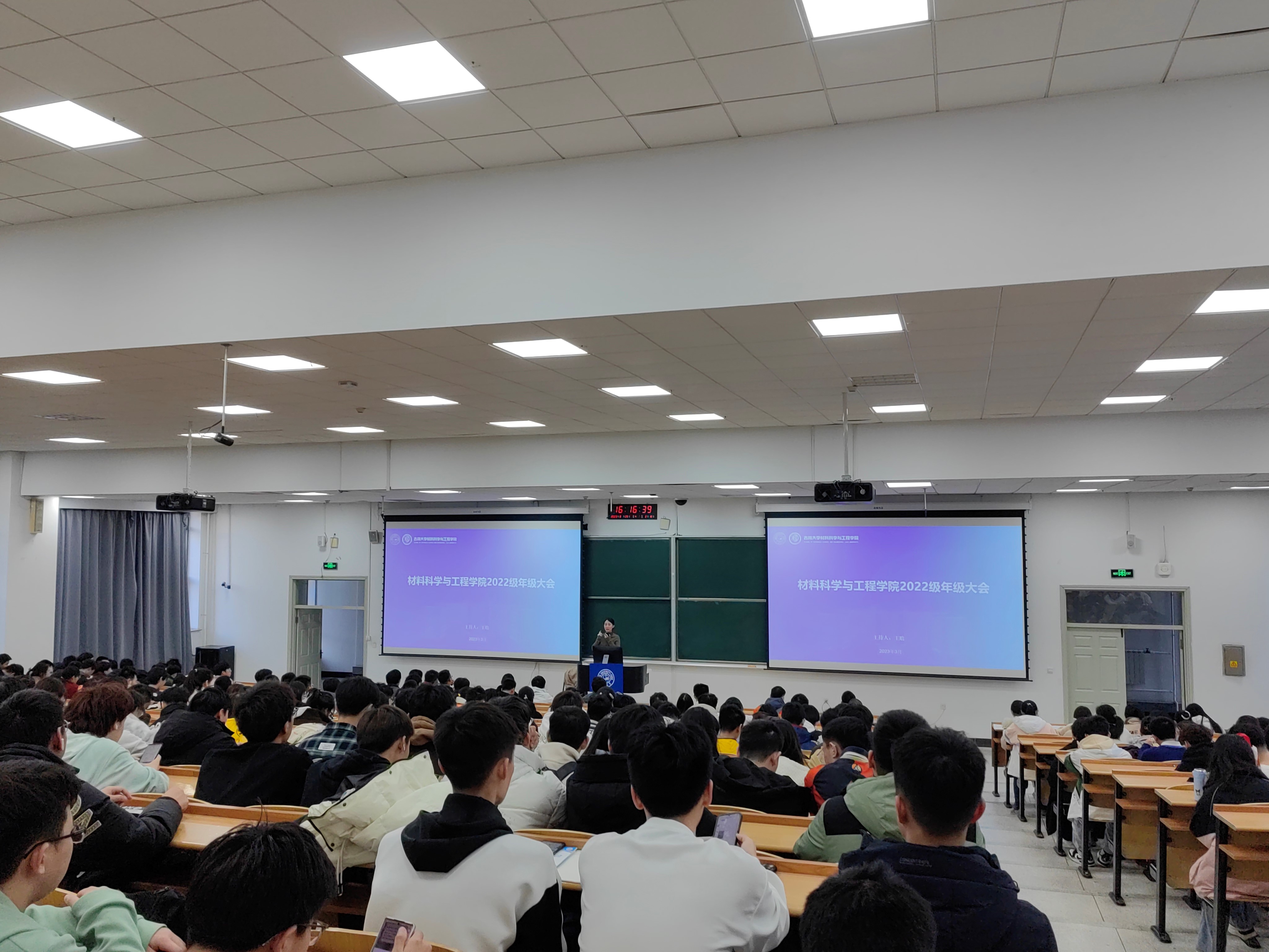 39日下午,黑料正能量 在逸夫教育大楼A206召开2022级年级大会,会议由辅导员王晗主持,材料类2022级本科生全员参加。