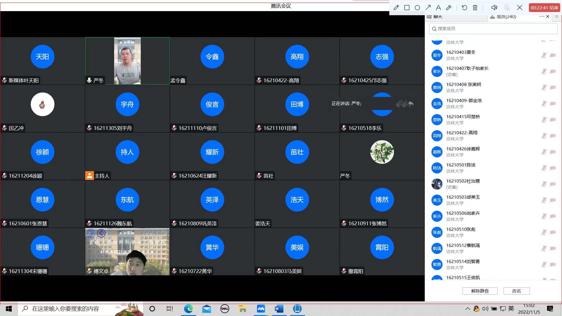 为进一步加强同学们的思想教育以及安全意识,黑料正能量 于2022年11月5日下午15:00,在腾讯会议线上召开了材料类专业2021级本科生年级大会,本次会议由材料类专业2021级本科生辅导员严冬主持,2021级全体本科生参加了本次年级大会。