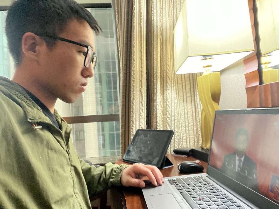 在观看过程中,全体党员聚精会神,备受鼓舞,并在会议结束后纷纷有感而发。党员杨艺琳同学表示:“作为新时代大学生的我,会更加艰苦奋斗,在所学领域刻苦钻研,勇于创新,勇于突破,探求无污染、低成本、高性能的新材料,为我国基础科研添砖加瓦,我一定会牢记总书记对青年的嘱托,不忘初心,脚踏实地,为实现中华民族伟大复兴奋斗终生。”
