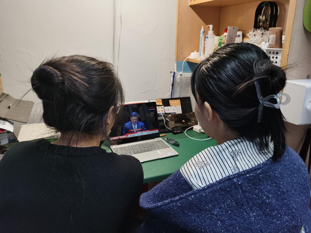 全体辅导员老师和本科、研究生毕业年级学生代表一同观看报告会,其余学生以寝室为单位分小组线上观看。
