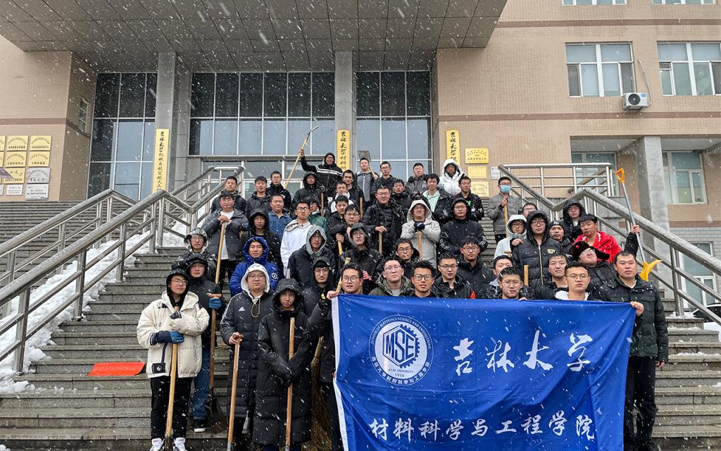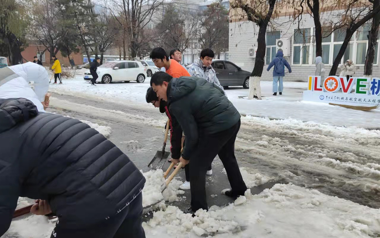 入党积极分子、2021级材料类专业本科生在本科生党支部书记、辅导员严冬老师的组织和带领下,于2021年11月8日对分担区内进行扫雪除冰工作。