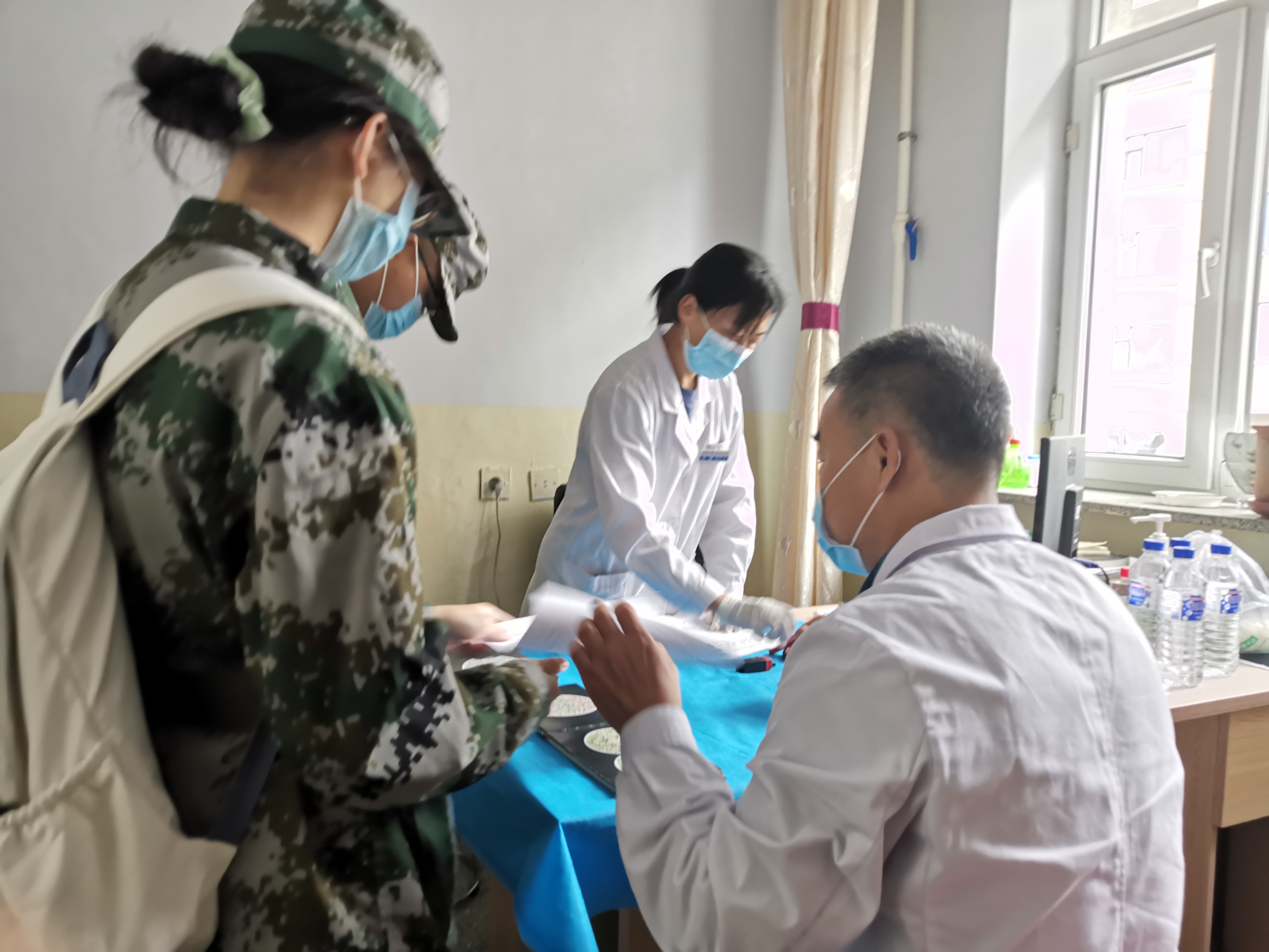 各班助理同学按照统筹安排和工作要求,叮嘱新生体检需空腹,并准备相关费用及资料,以班级为单位,依次带领学生进入医院进行检查,同时,各班军训负责人履行职责,收取体检费用以及发放体检表。在体检工作过程中,医护人员精心组织,规范操作,体检工作有条不紊进行。