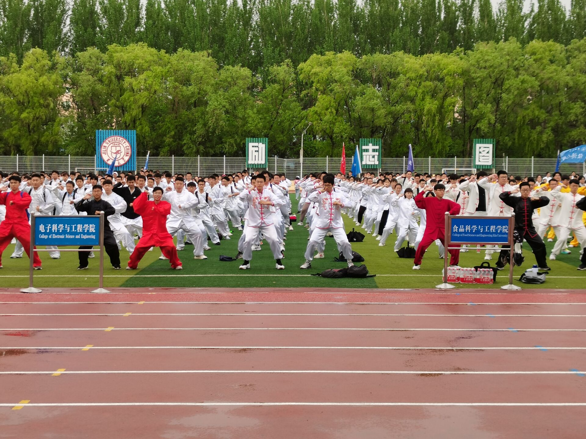 于5月28日组织八极拳队员在中心校区体育场进行八极拳表演。