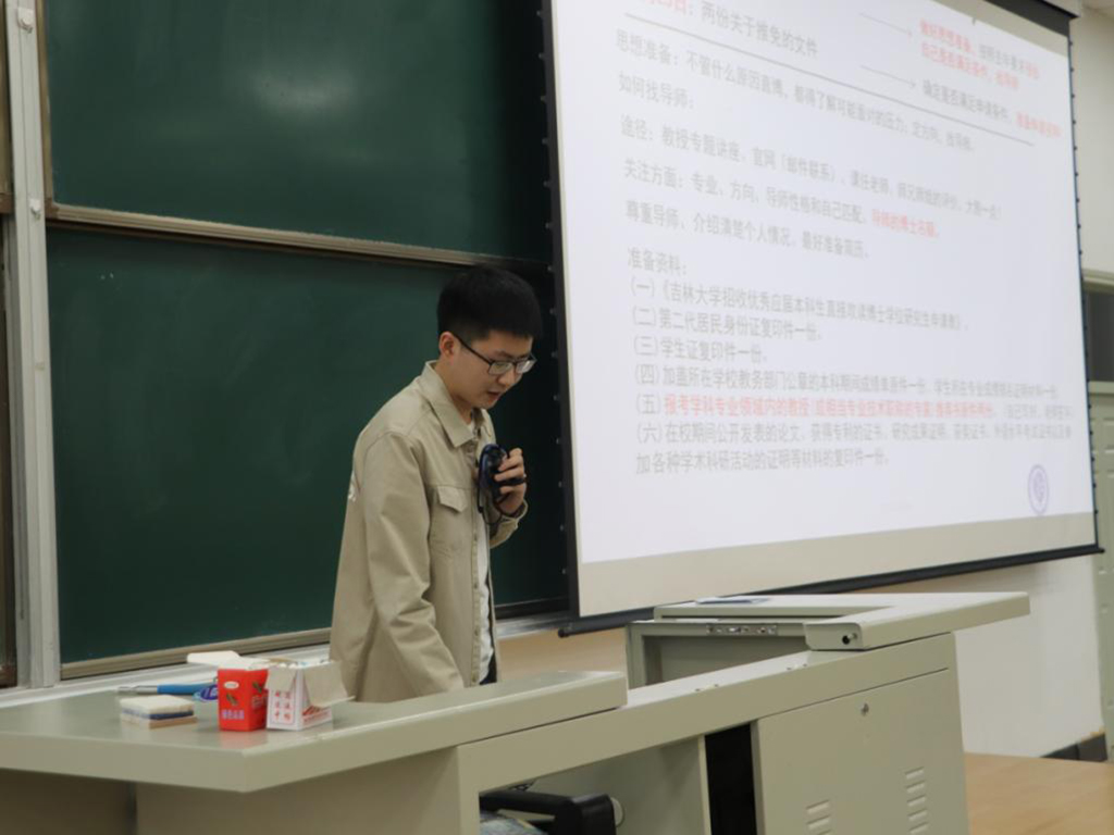 今年考研的情况,整理分析了目前国内高校的复试信息,指导学生合理规划考研、保研目标。同时,本次宣讲会还邀请了三位往届优秀直博生为大家分享经验。宣讲会在同学们热烈的掌声中圆满结束。
