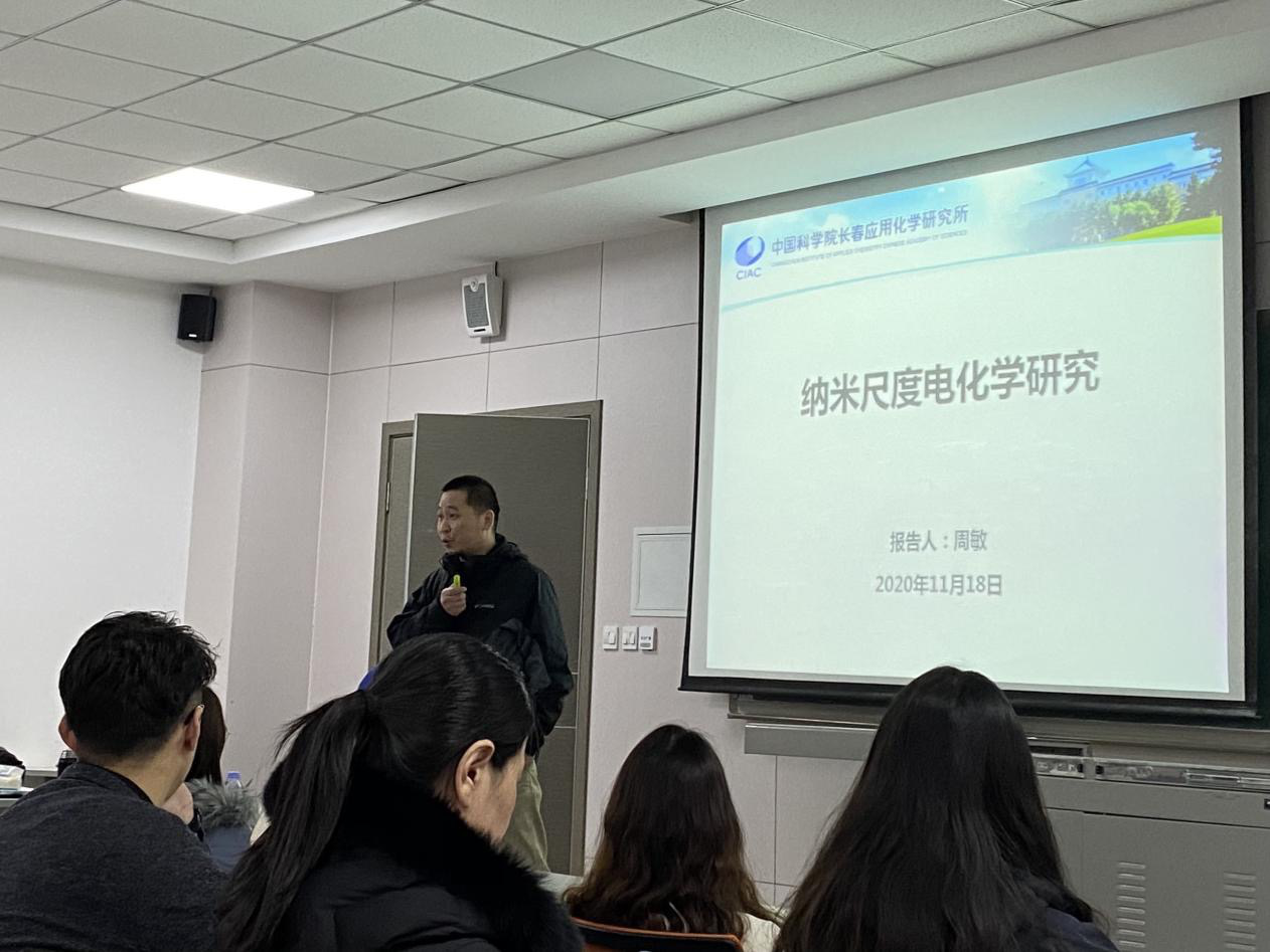 长春应用化学所(以下简称应化所)教育处刘靖宇处长、邢晶老师、周敏研究员,为同学们讲解中科院系统的保研、考研相关资讯。