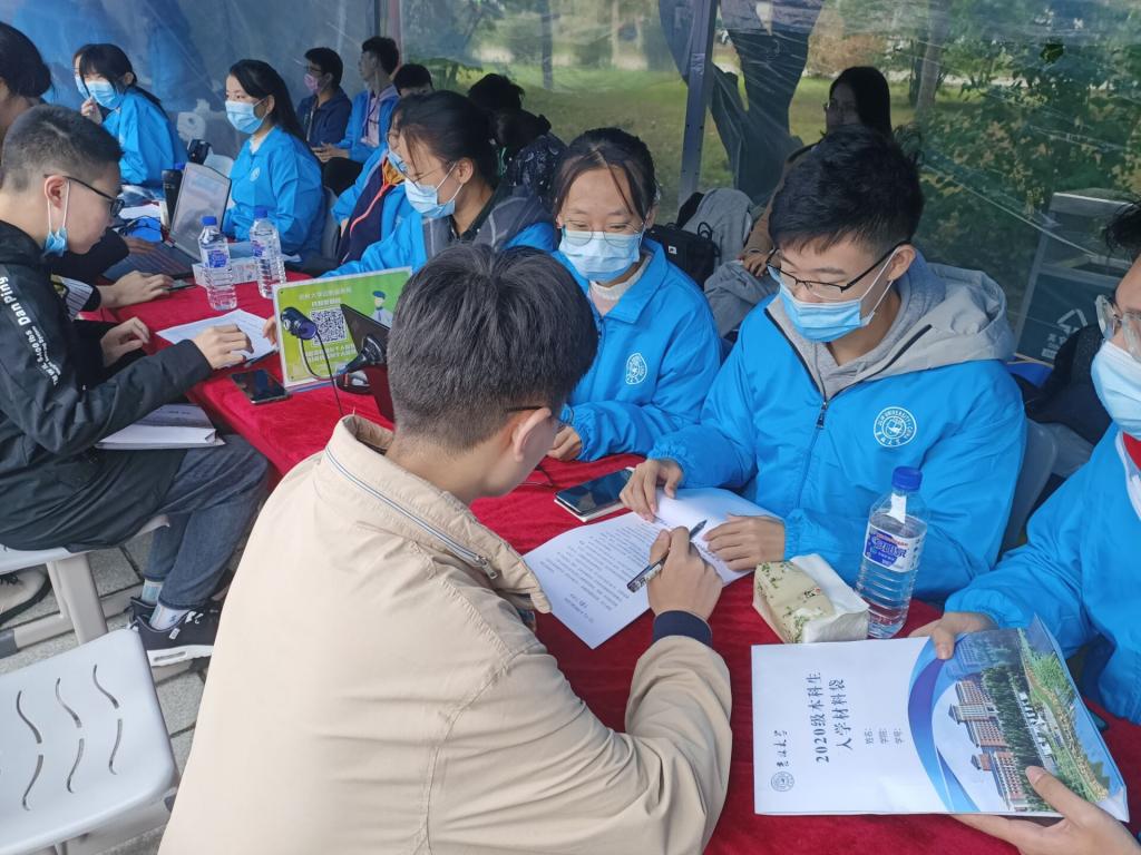领导和辅导员老师们前往迎新场地,亲自指导迎新活动的开展。虽然秋风中裹夹着一丝丝凉意,但挡不住迎新志愿者们的热情。他们帮助新同学完成入学登记,领取防疫物资,并且亲自帮助搬运行李,送新同学们前往公寓,领取钥匙完成报到。