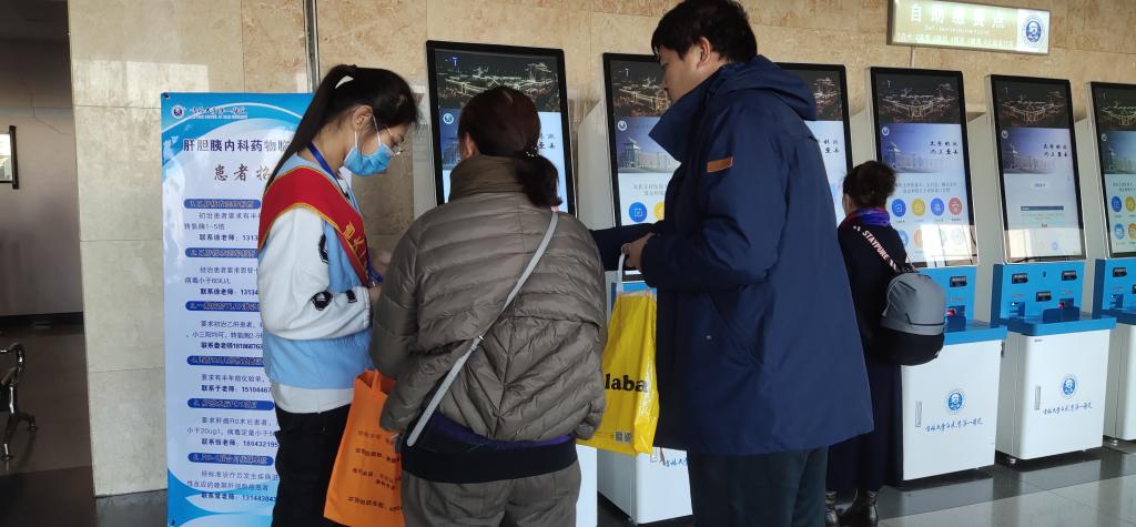 一院社会工作部负责人郝婧给大家简单地介绍了一下导诊工作的具体内容。随后,志愿者们进行了上岗前的线上培训,并且全部顺利通过。紧接着志愿者们走上自己负责的区域岗位,耐心地给每一位患者及患者家属进行细致耐心的解答。虽然正值门诊高峰,大厅内人头攒动,给导诊工作带来较大压力,但每一位志愿者都有条不紊地为患者提供服务。在门诊大厅,他们身穿统一的蓝马甲,为前来就诊的患者提供舒适、便捷、贴心的服务;患者有疑问时,他们前来解答;患者排队时,他们帮助疏导;患者不理解时,他们帮助解释;患者行动不便时,他们上前搀扶。流动岗在人群中穿梭,维护秩序,通过为患者提供接、陪、送、答、帮等全程服务,给患者带去了温暖,提高了工作效能……一系列志愿服务让每位患者都感受到冬日阳光的热情与温馨。活动接近尾声,爱心志愿者们一同合影留念,共同记录这短暂的美好时光。
