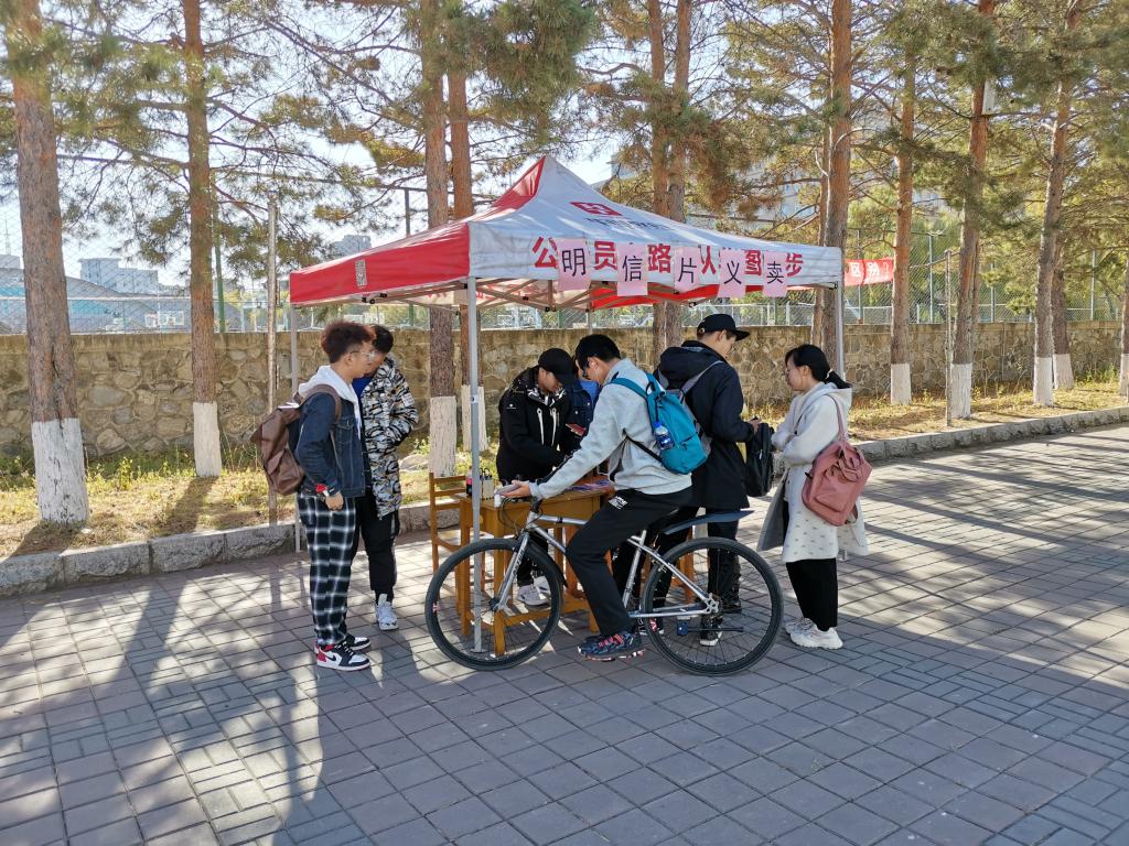 南岭校区文化活动中心前组织了“重温光荣岁月”自制明信片爱心售卖活动,2018级部分学生干部和志愿者参加了本次活动。