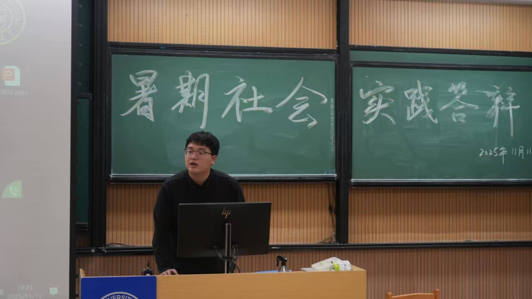 组织开展2025暑假社会实践终审答辩会。2024级10名同学代表各自社会实践团队参与答辩,辅导员唐运通老师参加本次活动。