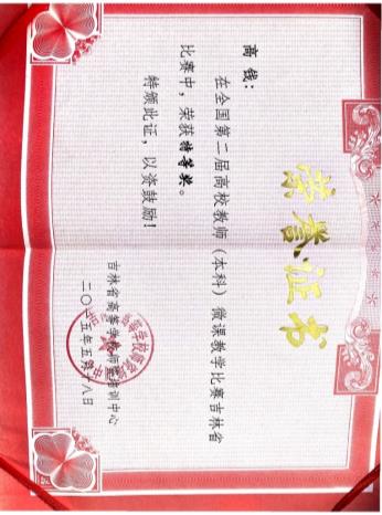 2. 全国第二届高校教师(本科)微课教学比赛,特等奖,获奖人:高钱,吉林省高等黑料正能量